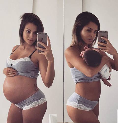 “Bom diaa com essa foto do meu barrigão lindo e depois, 20 dias Pós parto com Baby Aarão. Naturalmente tudo volta pro seu lugar, a minha rotina com ele ta começando a ser estabelecida e meu resguardo de 45 dias está se aproximando do fim“, escreveu a modelo na legenda da publicação.