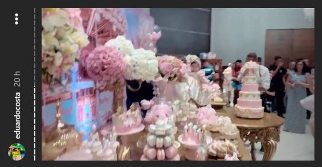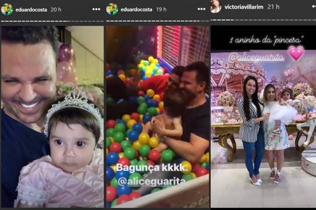 A festa foi animada e Eduardo mostrou alguns detalhes do aniversário de 1 aninho de Alice, filha de seu amigo Well. O cantor sempre posta vídeos ao lado da menina. A namorada do sertanejo Victória Villarim também marcou presença.