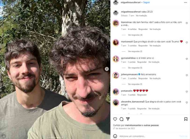 As informações foram divulgadas pelo Terra e mostram que ambos se conheceram durante as filmagens da série “Máscara de oxigênio não cairão automaticamente”. Miguel é formado em Artes Cênicas pela Cal e também já fez trabalhos na TV, aparecendo no elenco da novela “Reis”, da TV Record.