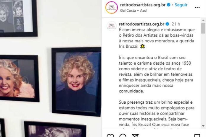 Conhecida por seus trabalhos em novelas como “Belíssima” e “Vale Tudo”, Íris Bruzzi se mudou para o Retiro dos Artistas após ser diagnosticada com princípio de Alzheimer.