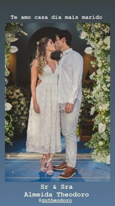 Há um mês Bárbara Evans, de 29 anos, juntou as escovas de dentes com Gustavo Theodoro. Os dois se casaram em uma cerimônia particular por conta do coronavírus, mas tudo foi transmitido pela internet para que os familiares pudessem acompanhar o amor dos pombinhos. Apesar de tudo ter sido restrito, a famosa não escondeu o tamanho da felicidade.