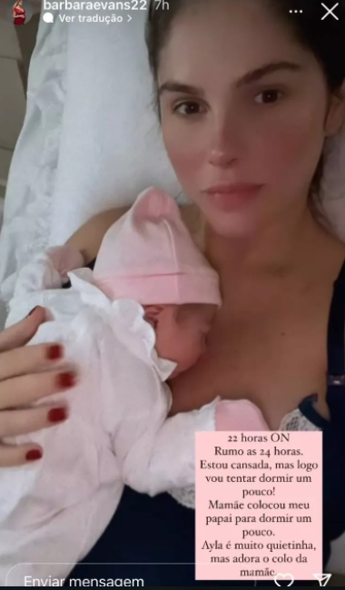 Além disso, ela ainda publicou outro stories na rede social, onde afirmou que das 24h do dia, 22h estava acordada: “22 horas ON, rumo as 24 horas. Estou cansada, mas logo vou tentar dormir um pouco. Mamãe colocou o meu papai para dormir um pouco. Ayla é muito quietinha, mas adora o colo da mamãe”, comentou Bárbara. A modelo ainda desabafou sobre a ansiedade. “É o amor maior do mundo, gente, estou ansiosa para chegar em casa e mostrar a Ayla para o Enrico”.
