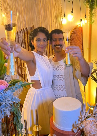 A atriz optou por uma cerimônia bem íntima, apenas cm amigos mais próximos e familiares no seu apartamento na Tijuca, Zona Norte do Rio. Segundo informações do jornal O Globo, o casamento foi realizado por um juiz de paz.