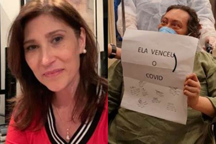 Quem também comemorou muito a alta médica foi a filha da diretora, Vanessa Bruno. Ela publicou o vídeo da mãe saindo do elevador com o cartaz: “Ela venceu a Covid”.