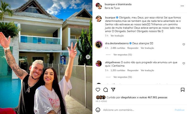 Em seu perfil oficial no Instagram, Buarque publicou fotos da nova casa em um condomínio de luxo. “Obrigado, meu Deus, por essa vitória! Sei que fomos determinados, mas sei também que de nada teria adiantado se o Senhor não estivesse ao nosso lado. Trilhamos um caminho justo de muito trabalho! Deus esteve sempre ao nosso lado meu amor. Obrigado, Senhor! Obrigado nossos fãs“, escreveu o DJ na legenda do post.