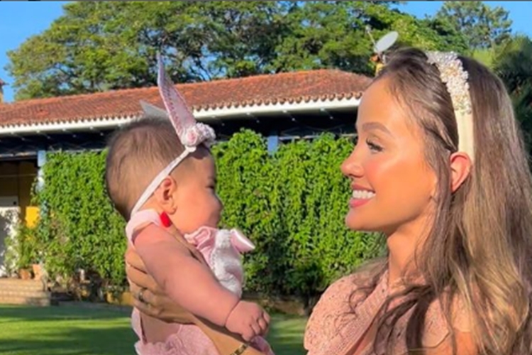 Para a ocasião, a esposa do sertanejo aproveitou o clima de coelhinho da páscoa e decidiu fazer uma festinha com temática , a celebração teve direito a uma mesinha de doces que pareciam deliciosos compondo o cenário, além da pequena caracterizada com uma tiara fofa de coelhinha, ambas com looks na cor rosa claro.