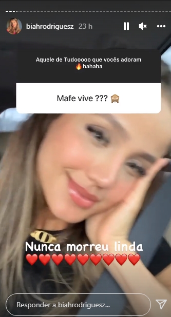 Biah foi direta e deu a entender na resposta que os dois estariam juntos: “Nunca morreu, linda”, disse, com vídeo boomerang em que aparece aparentemente acenando que sim com a cabeça.