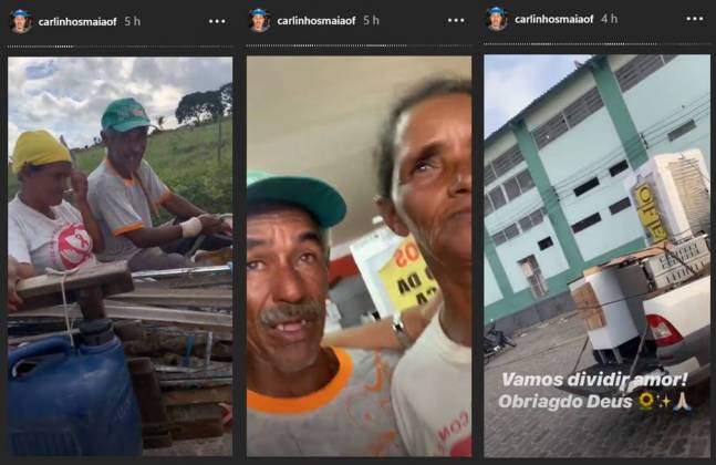 Nos stories do seu Instagram, Carlinhos mostrou que enquanto estava andando de carro por sua cidade, em Alagoas, ele se deparou com o casal, já com certa de idade que estavam na rua.