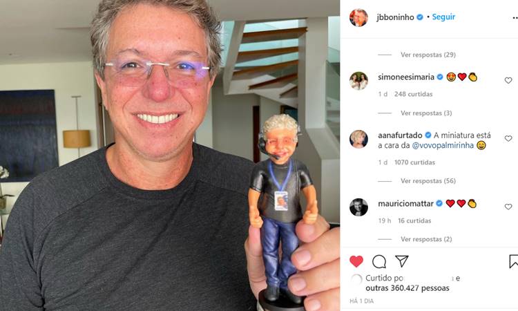 No entanto, o que mais chamou atenção nos comentários, foi o de sua esposa, Ana Furtado alegando que o boneco está a cara da Palmirinha. “A miniatura está a cara da Vovó Palmirinha”, escreveu a apresentadora.