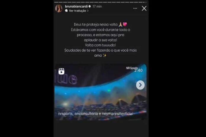 Neymar deve voltar aos campos em breve vestindo a camisa do Al Hilal. A namorada do jogador, Bruna Biancardi, compartilhou um post celebrando seu retorno aos gramados, afirmando que ela e a filha estarão na torcida por ele.