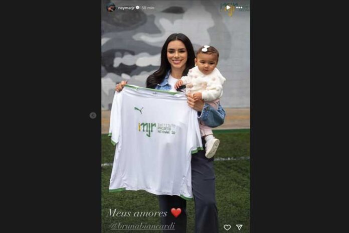 “As fotos mais fofas que você vai ver hoje! Recebemos Bruna Biancardi e Mavie aqui no Instituto Neymar Jr. para conhecer o projeto social de perto”, escreveu o perfil no Instagram, mostrando uma foto em que a influenciadora aparece com a filha no campo, com uma imagem do atacante ao fundo.