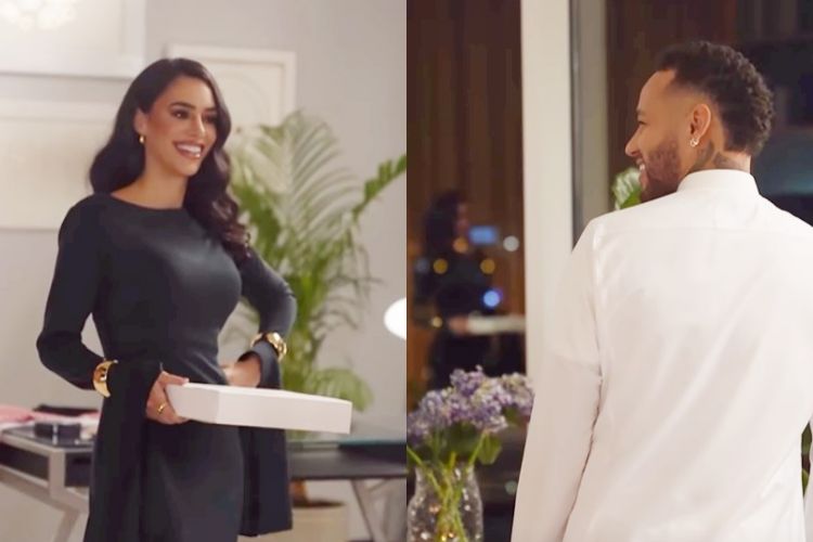 Biancardi exibiu o momento em que entra séria e elegante na cena em que estava produzindo com o astro do futebol brasileiro e mundial, enquanto ele começa a rir quando olha para ela. Bruna acaba se desconcentrando mesmo e teve que retornar a gravação do início.