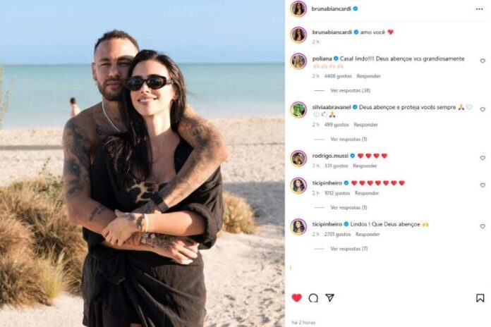 Por falar em público de rede social, Bruna recebeu vários comentários de pessoas famosas reagindo ao momento fofo deles. Poliana Rocha, jornalista e esposa do cantor Leonardo, escreveu a seguinte mensagem: “Casal lindo! Deus abençoe vocês grandiosamente”, disse a influenciadora digital. Silvia Abravanel, apresentadora e herdeira de Silvio Santos, também deixou um recadinho: “Deus abençoe e proteja vocês sempre”.