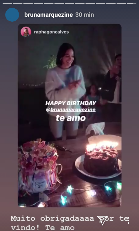 E as comemorações não pararam a grande amiga que também fez aniversário recentemente Sasha Meneghel foi à festa de aniversário de Bruna Marquezine e dividiu em seu Instagram um registro desse momento. De moletom e jeans, a atriz recebeu os parabéns dos amigos em seu casa. “Te amo”, disse a filha de Xuxa a atriz.