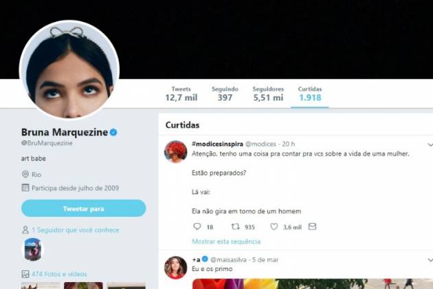Se a conta no Instagram de Bruna Marquezine está desativada, no Twitter, por sua vez, é bem diferente. A conta está super ativa e repleta de indiretas.