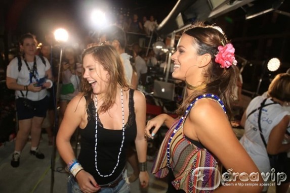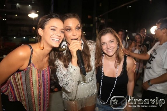 Bruna Marquezine subiu no trio de Ivete Sangalo e dançou ‘Lepo Lepo’, hit da banda Psirico. A atriz estava acompanhada de Alice Wegmann que viveu a Shirley, sua rival, na segunda fase da novela ‘Em Família’. As duas se divertiram ao lado da cantora.