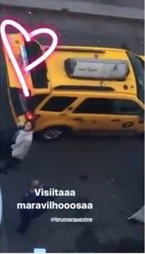 No vídeo, a namorada de Neymar aparece descendo do táxi, com malas nas mãos e prontinha para passar alguns dias no apartamento de Sasha.