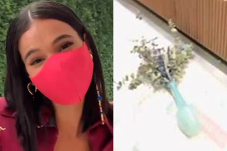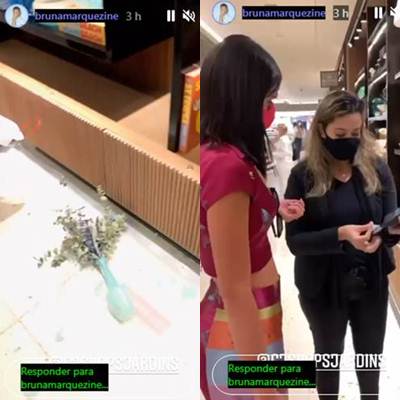Depois de desfilar por várias lojas do local com um look bem estiloso, a atriz acabou sem querer quebrando um vaso. Além de compartilhar o momento que quebrou a peça de decoração, ela também compartilhou o momento que pagava pelo vaso quebrado com cartão de crédito.