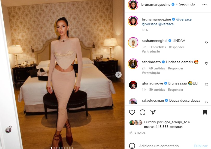 Desse modo, na postagem, é possível observar a atriz ousando, e muito, em seus looks. A jovem Bruna Marquezine também não deixa de exibir um belo físico escultural que virou alvo de muitos elogios.