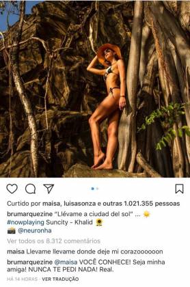 Depois a estrela do SBT, Maísa, comentou o post com um trecho da canção: “Llevame llevame donde deje mi corazoooooo”, postou a jovem. Então Bruna interagiu. “Seja minha amiga! Nunca te pedi nada! Real”, brincou a atriz.