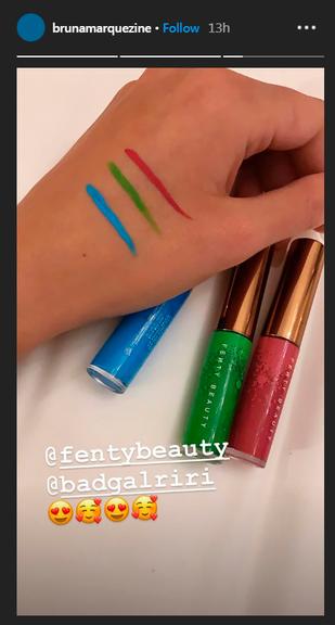 Em seu Instagram, artista mostrou um kit de maquiagens da marca Fenty Beauty, que ganhou da cantora norte-americana, comandada por ninguém menos que a estrela internacional Rihanna. Será que ambas viraram amigas?
