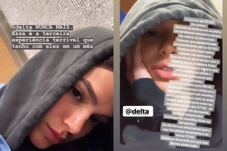 Bruna Marquezine afirmou que nunca mais vai confira nos serviços da empresa: “Eu nunca mais vou voar com a Delta de novo. Essa é a terceira experiência terrível que tenho com eles em um mês”.