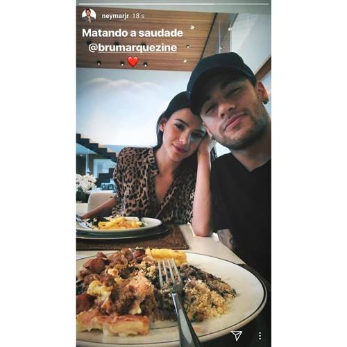 Na tarde de sábado (10), o craque, atual jogador do Paris Saint-Germain, publicou em seu InstaStories uma foto de seu almoço com Bruna e escreveu: “Matando a saudade“.