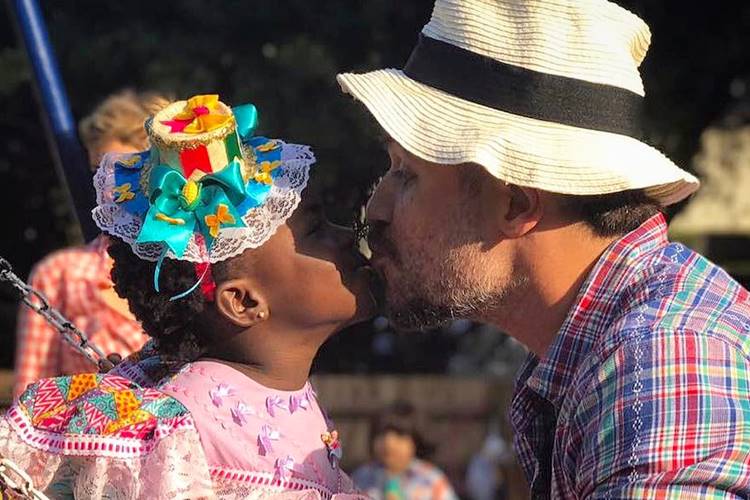 “Dia de arraiá e fexta junina sô“, escreveu Bruno em um click brincando com a filha em um balanço.