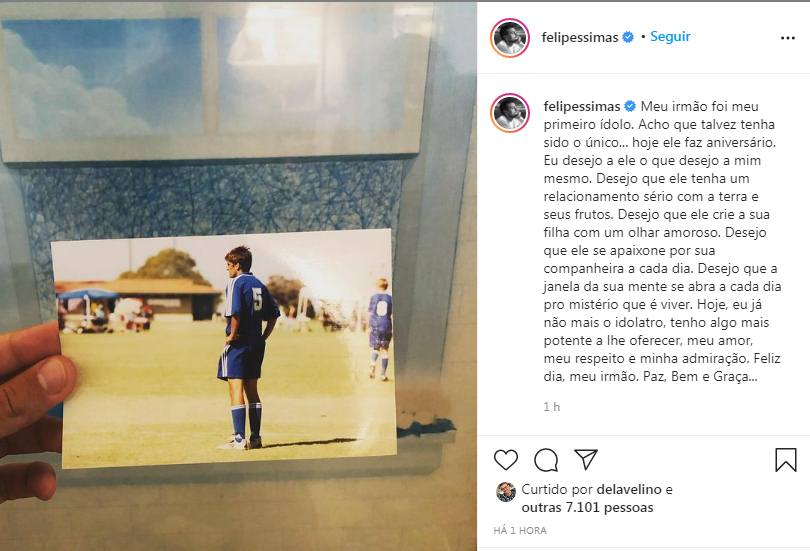 Para terminar, Felipe parabenizou o irmão. “Hoje, eu já não mais o idolatro, tenho algo mais potente a lhe oferecer, meu amor, meu respeito e minha admiração. Feliz dia, meu irmão. Paz, Bem e Graça…”, finalizou.