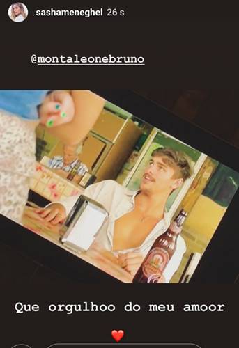 “Que orgulho do meu amor”, disse Sasha, em vídeos no Instagram em que aparece assistindo à novela.