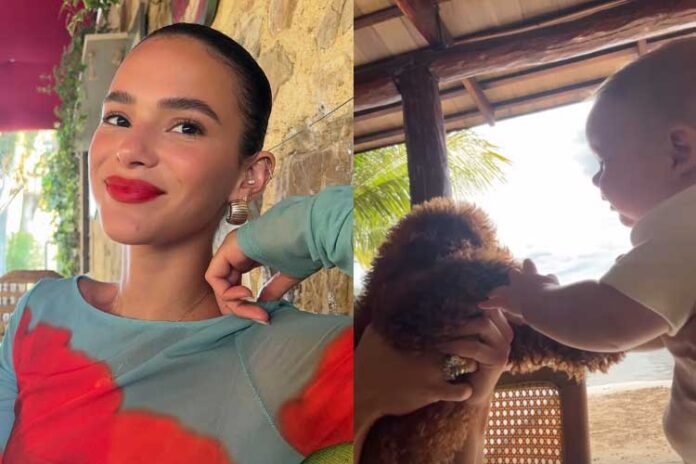 Bruna Marquezine marcou presença durante a celebração do aniversário de João Guilherme, realizada na Fazenda Talismã. A namorada do ator foi uma das convidadas, perdendo o posto de favorita para a sua cachorrinha de estimação.