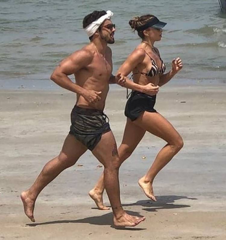 Na manhã desta terça-feira (31) os dois foram flagrados por uma turista durante uma corrida matinal. A internauta postou vários registros onde Caio e Grazi aparecem correndo lado a lado na beira da praia.