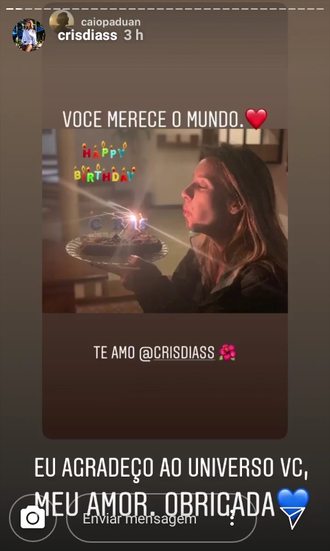 Caio Paduan, namorado da apresentadora Cris Dias resolveu usar as redes sociais para parabenizar a amada. Apaixonado ele fez uma declaração.