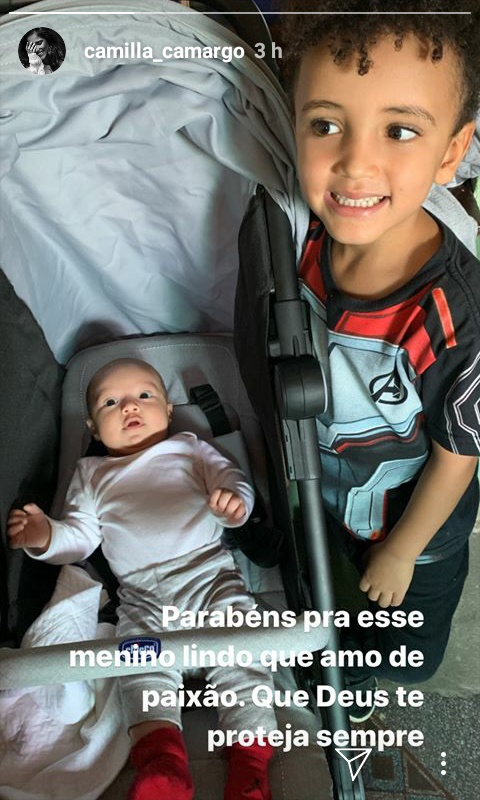 Na manhã desta quinta-feira (10) não foi diferente, ela compartilhou um clique lindo em família. A atriz, que é mamãe de primeira viagem, mostrou uma foto de Davi, filho de sua tia, Luciele di Camargo, paparicando muito seu herdeiro, Joaquim, e escreveu uma homenagem especial ao primo.