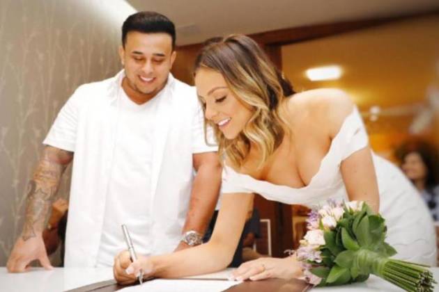 “Agora sim. Casados”, escreveu o cantor, exibindo uma foto do momento do casamento em seu perfil no Instagram. “Que a gente fale eu temo assim, do nada, ter filhos alegrar e bagunçar a casa, que Deus conserve nosso amor assim, até ficar ‘velhim'”, completou Sarah em seu perfil.