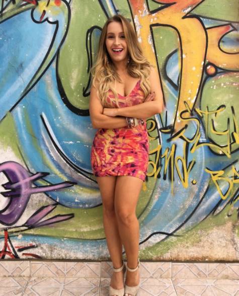 Na imagem, a jovem apareceu toda sorridente usando um vestido curtinho e com direto a um decotão no busto. “Prazer, Carine!“, celebrou Carla referindo-se à sua personagem.