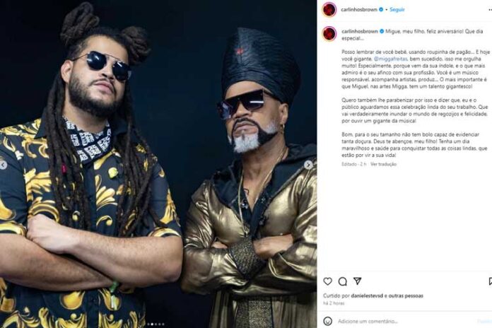 Na sequência da mensagem, Carlinhos Brown comemorou mais um ano de vida de Migga Freitas, afirmando ser um pai orgulhoso do que ele se tornou. “Você é um músico responsável, acompanha artistas, produz… O mais importante é que Miguel, nas artes Migga, tem um talento gigantesco!”, afirmou.