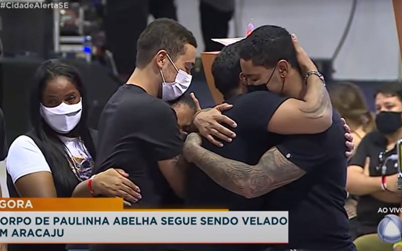 “Emocionados, eles abraçaram os familiares da cantora da banda Calcinha Preta. O esposo de Paulinha, Clevinho Santos, recepcionou os influenciadores. Abraçados, eles choraram juntos”, anunciou a página.