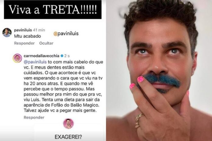 E não parou por aí. Carmo foi ainda mais ácido, criticando o físico do seguidor: “Tenta uma dieta para sair da aparência de Fofão do Balão Mágico. Talvez ajude você a pegar mais gente”, comentou, perguntando aos seus seguidores se havia exagerado na resposta.