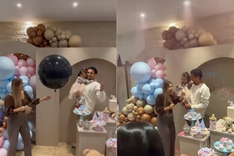 Através das redes sociais, a influenciadora compartilhou com seguidores um vídeo exibindo o o momento especial na vida do casal. A tradicional decoração teve balões nas cores em azul e rosa, com ursinhos de pelúcia.