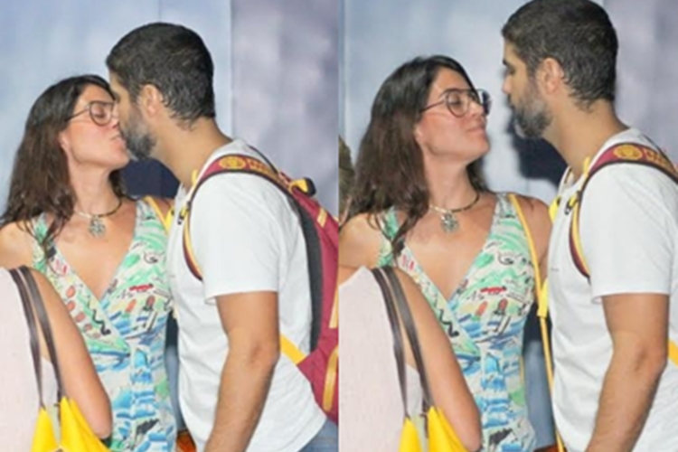 O casal costuma ser bem discreto com relação ao namoro, mas dessa vez eles pareciam bem à vontade, trocaram beijos diante das câmeras e ainda posaram agarradinhos e sorridentes nos corredores do teatro Petra Gold, no Leblon, zona sul do Rio de Janeiro.