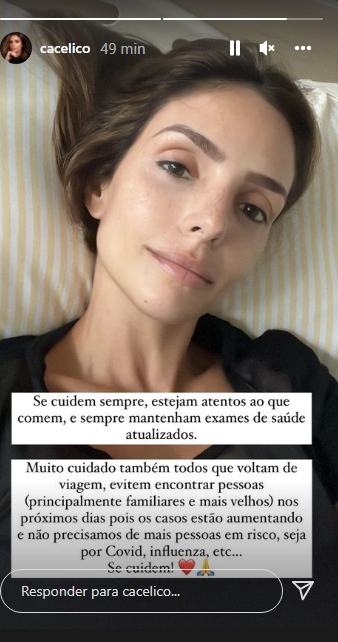 Carol Celico recorreu as redes sociais para falar sobre seu problema de saúde, após passar mau e precisar ser internada.