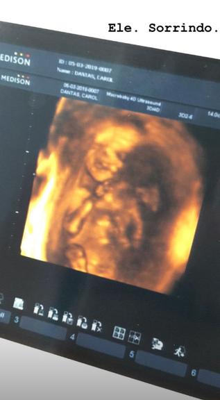 Através do Stories do Instagram, o papai coruja exibiu a imagem do filho, que foi feito em uma loja de itens para crianças e gestantes nos Estados Unidos. “Ele sorrindo”, legendou.