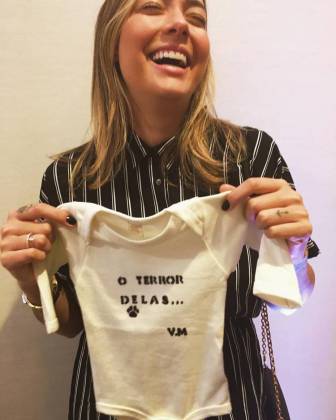 Neste último sábado, 30, o mais novo papai Vinicius revelou o nome de seu primeiro filho. Ele compartilhou em seu Instagram, um click de Carol em que ela aparece super sorridente e segurando um body, com os dizeres: ‘O terror delas … V.M’.