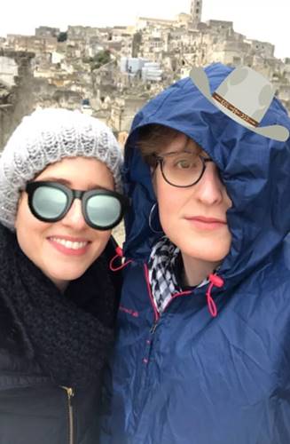 “Esse sol tá bem falsiane hoje!”, escreveu a atriz na legenda da imagem que mostra as duas com roupas pesadas para aguentar as baixas temperaturas da Itália.