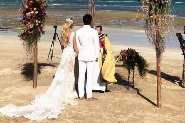 Aconteceu na tarde deste sábado (26), em São Miguel dos Milagres, o casamento de Caroline Bittencourt, com o empresário Jorge Sestini. Para a ocasião, Caroline apostou em um vestido leve, trasparente, assinado por Yolan Cris.