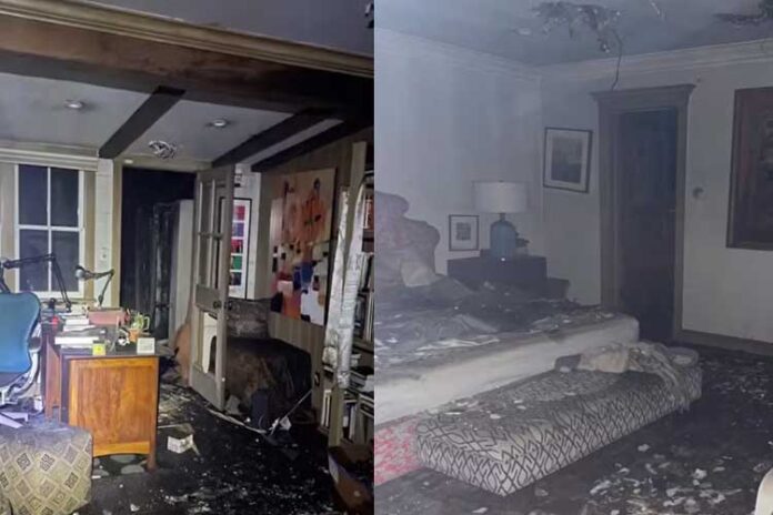 Rainn aparece andando pelos destroços, sendo possível ver que a suíte principal e demais cômodos foram destruídos, resultando em buracos no teto e goteiras. Falando sobre o incêndio, o astro disse que está em Los Angeles para uma peça de teatro, mas sua casa foi atingida pelo fogo, que deixou um rastro de destruição na região com cerca de 130 outras residências destruídas.