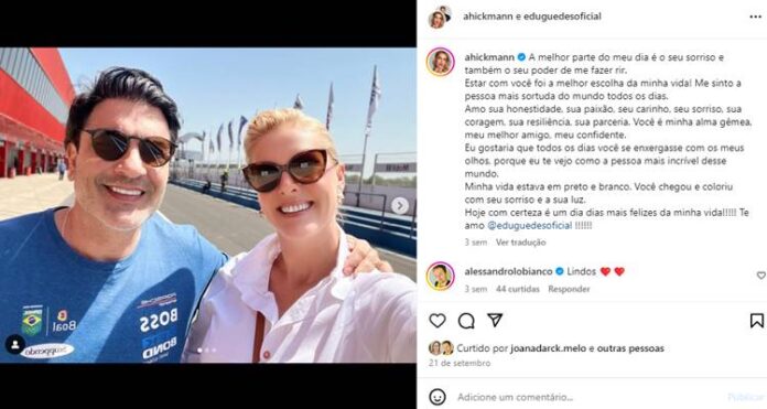 Há poucos dias, Ana mostrou para os seguidores o quanto está apaixonada por Edu ao publicar uma linda declaração de amor. “A melhor parte do meu dia é o seu sorriso e também o seu poder de me fazer rir. Estar com você foi a melhor escolha da minha vida! Me sinto a pessoa mais sortuda do mundo todos os dias. Amo sua honestidade, sua paixão, seu carinho, seu sorriso, sua coragem, sua resiliência, sua parceria. Você é minha alma gêmea, meu melhor amigo, meu confidente“, iniciou ela.