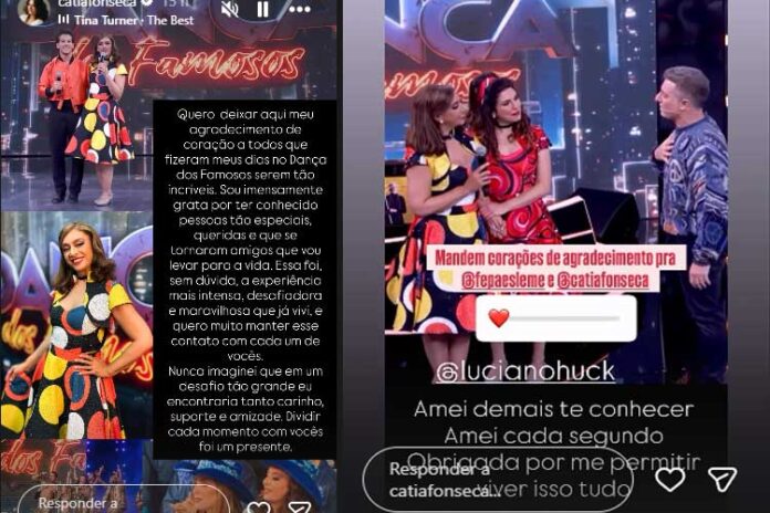 Cátia Fonseca falou pela primeira vez, após ser eliminada da “Dança dos Famosos”, ao lado de Fernanda Paes Leme, neste domingo (31). Através de seu perfil no Instagram, a apresentadora falou sobre a experiência de participar da competição do “Domingão com Huck”.