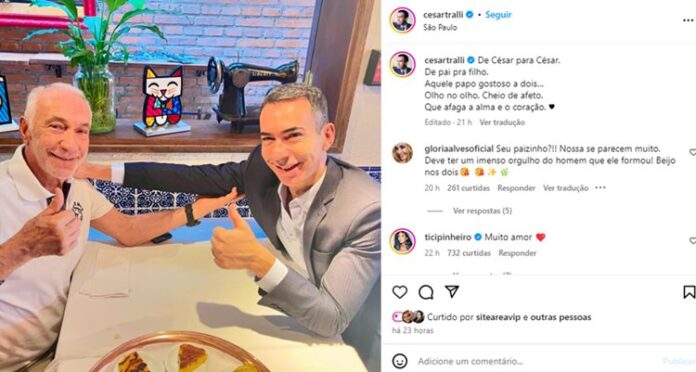 Há poucos dias, Cesar também surgiu ao lado do seu querido pai, em um jantar especial: “De César para César. De pai pra filho. Aquele papo gostoso a dois… Olho no olho. Cheio de afeto. Que afaga a alma e o coração“, publicou ele, arrancando elogios dos seguidores.